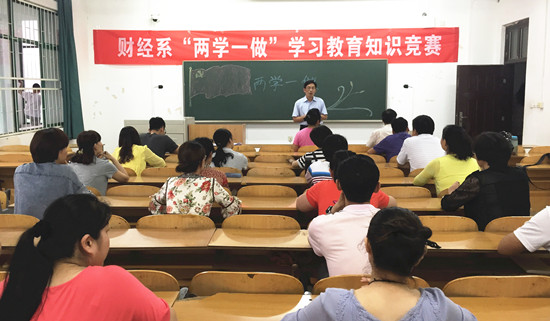 5月31日下午,财经系党总支利用政治学习时间在5号教学楼302室举办了“两学一做”学习教育知识竞赛活动,该系全体教工党员和在校的学生党员共计40余人参加了知识竞赛。
