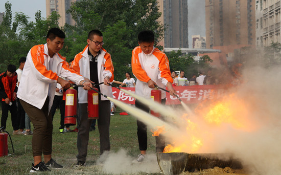 为进一步加强完美网页版安全工作,增强师生消防安全意识,提高师生火灾扑救应急处置能力,5月5日下午,我校在1号教学楼西侧空地举行了消防灭火演练活动。机械工程学院、环境与化学工程系、图书馆、后勤服务中心等重点防火部门的相关人员及各院系学生代表200余人参加了演练。