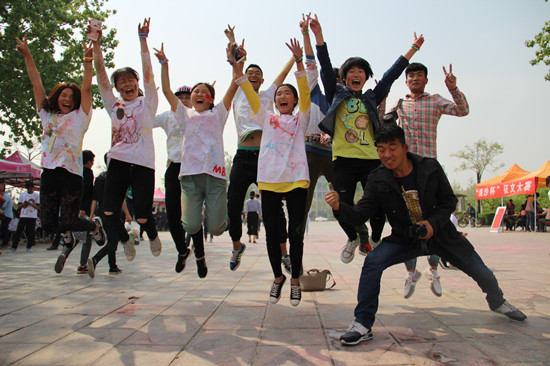 活动的参赛者统一领取白色T恤并任意进行着色,热辣的舞蹈拉开了活动的序幕,党总支书记赵杰发表讲话,副书记耿亚杰发布开跑令。随着一声号令,包括副院长谭建领在内的30余名教师和500余名学生,身着涂鸦的T恤,一同起跑。活动中,师生们抛下包袱、释放压力,在青春的赛道上自由奔跑。上午11点,参加活动的师生们完成了整场几公里的跑步并安全返回终点后,觉得所有的压力在这短短的几公里内都得以释放。