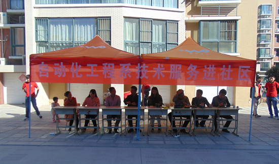 为发扬助人为乐的优秀品质,提高学生的实践能力和技能水平,树立“学习技能、回报社会”的理念, 10月10日至11日,自动化工程系党总支副书记管欣、分团委书记赵鹏以及该系部分专业教师等带领学生在里仁居小区和我校宿舍区开展了“技术服务进社区”公益活动。