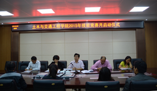 10月8日下午,土木与交通工程学院在教学会议室举行了2015年技能竞赛月活动启动仪式。教务处长焦爱萍出席仪式。该院领导班子成员、各赛项负责人、骨干教师及学生代表等参加启动仪式。仪式由该院副院长谭建领主持。