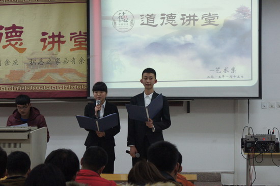1月15日晚上19:00,由艺术系承办的道德讲堂活动在教学楼6103举行。该系师生150余人参加活动。