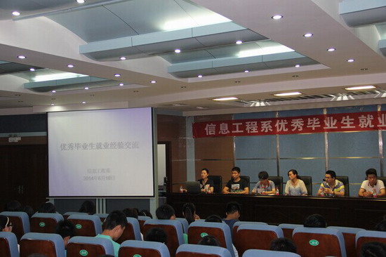 为加强对在校生的就业指导,帮助在校生提高就业质量、就业层次,解决学生在就业或专升本方面遇到的问题与困惑,在2014届毕业生即将毕业离校之际,6月10日中午13:00,信心工程系在学术报告厅举行了一场应届优秀毕业生就业经验报告会,会议由系党总支副书记殷莺主持,全体2012级学生及2013级2年制学生参加了会议。