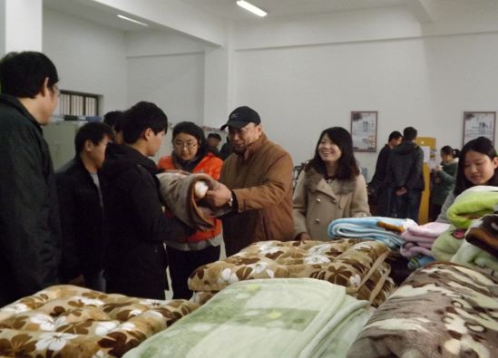 冬天已至,男生宿舍七楼阁楼条件较差,宿舍较冷,机电系领导多次走访学生宿舍,考虑到大多数住在阁楼的学生家庭经济状况不是很好,决定为他们置办抗寒物品,每人发放一条毛毯,每个宿舍安装一条棉门帘。