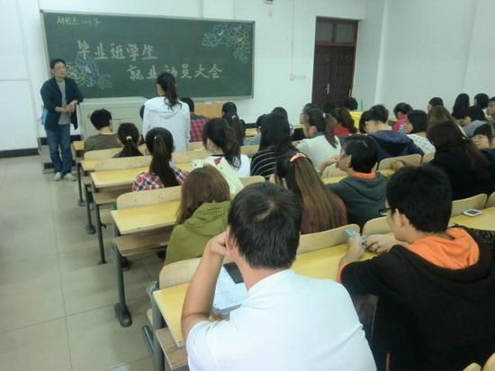 为使财经系毕业班学生提前了解就业形势,增强就业意识,调动全体毕业班学生的主观能动性,做到早准备、早落实,从而全面推动毕业班学生顺利走向工作岗位,9月25日下午13:00,财经系在JX6502召开了毕业班学生就业动员大会,财经系党支部书记杜广平、副书记崔嵩以及毕业班辅导员舒莎、马峥老师及财经系全体大三毕业班学生参加会议。