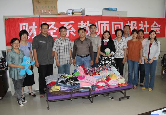 9月8日至9日,财经系分工会结合迎接新生活动开展,积极组织专业教师到迎新现场,帮助新学生办理各种手续,并解答同学们提出的问题,收到了良好的效果。9月11日,财经系分工会开展奉献爱心、关心智障儿童的社会回报活动,全体教师积极响应,分工会累计捐献246份衣物、书籍、玩具等,分别捐赠给开封市社会福利院和星火燎原公益组织,得到社会一致好评。