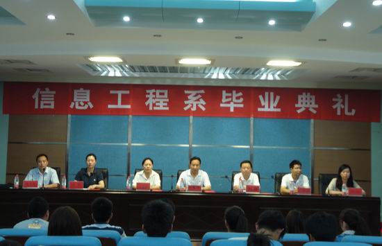 典礼在激昂的校歌中拉开了帷幕,殷莺书记首先讲话,对全体09级学生和软件职业技术学院(二年制)的首届毕业生表示衷心祝贺,并代表系全体老师向他们寄予祝福。她宣读了对省级和院级优秀毕业生给予表彰的决定,系领导和老师为优秀毕业生颁发证书,祝贺他们以优异的成绩完成学业,希望他们在以后的工作岗位上更上一层楼。