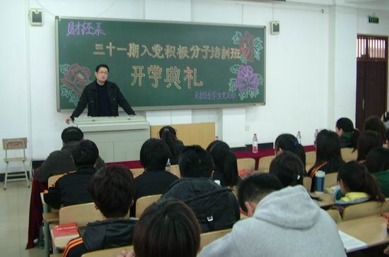 3月24日,财经系第三十一期入党积极分子培训班开学典礼举行。系党总支副书记宋建涛、分团委书记王国英及各级团支部书记出席了本次开学典礼。