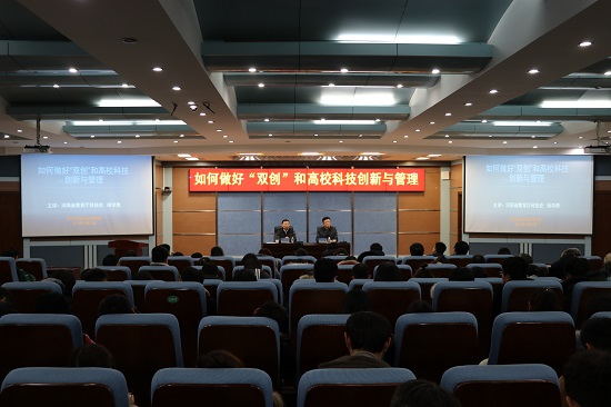 参观结束后,杨学勇在该校3号实训馆报告厅为200余名师生做题为《如何做好“双创”和高校科技创新与管理》的专题讲座。讲座内容丰富,涵盖了“双创”及高校科技工作的前沿信息,引发在场师生热烈反响。