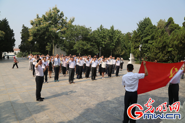 上午,暑期干部培训班全体学员来到焦裕禄纪念馆拜谒焦陵,在焦裕禄烈士墓前敬献花篮,缅怀焦裕禄烈士,学习焦裕禄精神,并在党旗前重温入党誓词。全体学员还来到兰考县展览馆,参观了焦裕禄事迹展厅和今日兰考展厅,通过大量有关图片、实物和珍贵影像资料,详细了解了焦裕禄“亲民爱民、艰苦奋斗、科学求实、迎难而上、无私奉献”的光辉事迹和高尚情操,全面了解了兰考人民战天斗地、治理“三害”的奋斗历程和英雄事迹。最后,全体干部来到焦桐前,再次聆听了焦裕禄同志治理风沙,尊重人才,带头植树造林,广栽桐树的感人事迹。