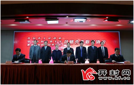 开封网讯 全媒体记者马立虹报道 12月20日上午,开封市人民政府、华北水利水电大学、黄河水利职业技术学院战略合作框架协议签约仪式举行。